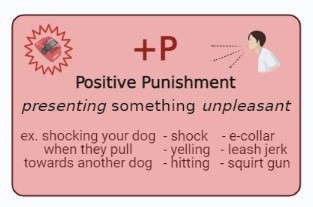 Positive punishment uses discomfort, pain, and/or fear as consequences for undesired behaviours. Negative consequences following a behaviour make your dog less likely to perform that behaviour again.