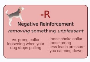 This method takes away the unpleasant consequence when the ‘bad’ behaviour ends. Dogs learn that certain behaviours make the pain stop, so they will be more likely to offer those behaviours. Many “no-pull” tools (like slip leads, prong and choke collars, or face halters) and “no-bark” collars use this principle. These products wouldn’t ‘work’ if they didn’t cause pain and discomfort. The theory is that the dog controls their own pain level, and will learn that if they stop pulling, the pain stops; unfortunately this often doesn’t work, as the tissue can lose feeling and dogs can do serious damage to their necks. They also endure a lot of pain for natural urges like sniffing, walking comfortably, or exploring their environment.